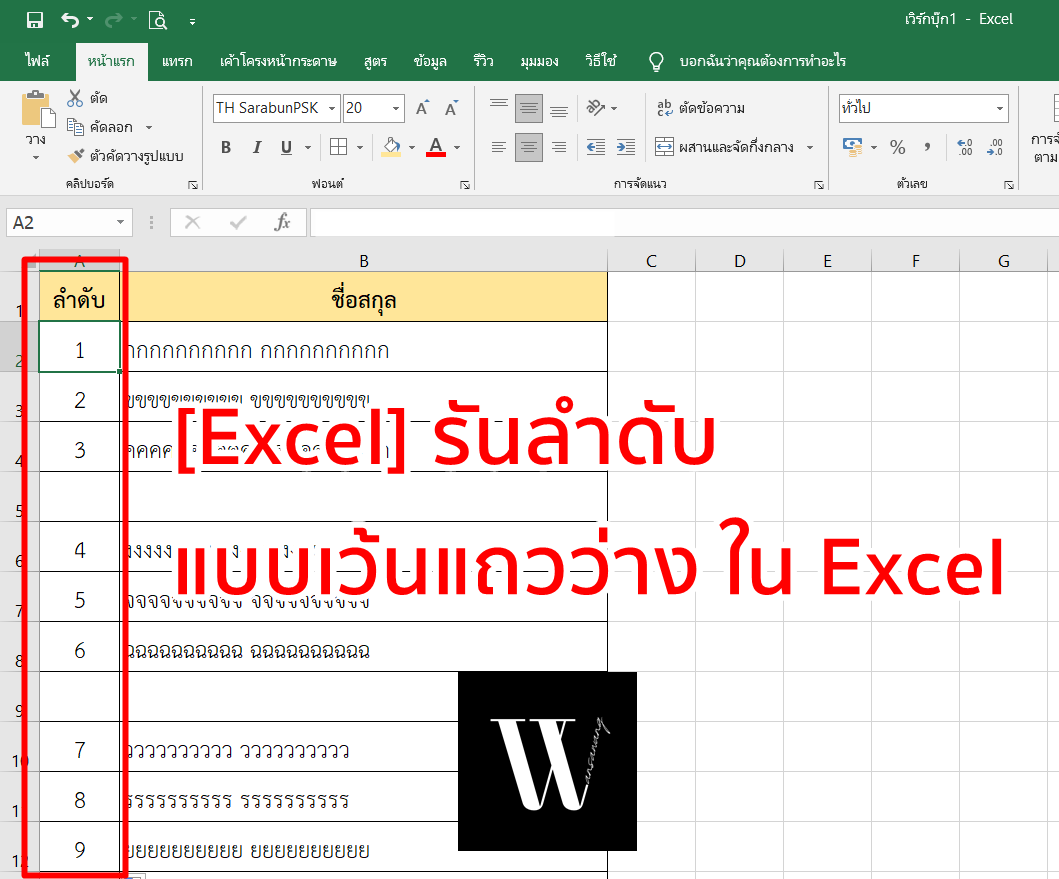 [Excel] รันลำดับ แบบเว้นแถวว่าง ใน Excel (Run number except blank row in Excel)